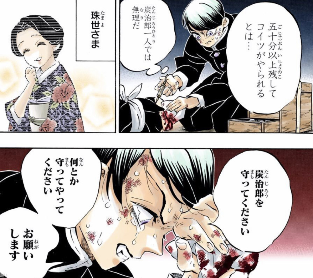 当然,珠世小姐姐的帮助也是让鬼杀队在这场战斗获胜的关键。我们都知道,愈史郎对珠世小姐姐抱有着好感,但鬼舞辻无惨杀死了珠世小姐姐让愈史郎震怒,最终愈史郎发挥了本身实力,而珠世小姐姐和蝴蝶忍小姐姐研制出来的药物是让鬼舞辻无惨走入绝境的最后一步。这份对珠世小姐姐的好感,是愈史郎决定使出全力帮助鬼杀队的最重要原因。