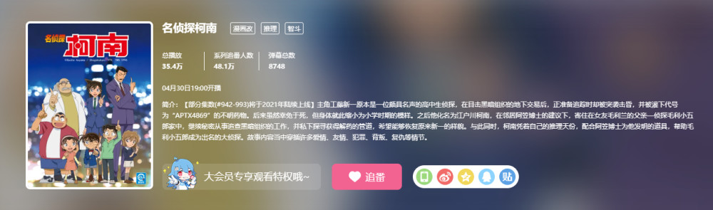 最后问题来了,如今这么多视频平台都有《名侦探柯南》的动画,你会选择在哪个平台追番呢?为什么?欢迎在下方评论区发表你的看法。