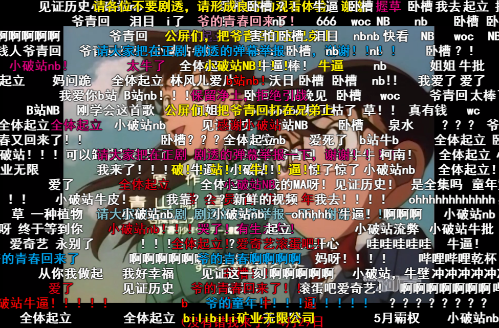 而既然这里说到了弹幕,那么小编就顺便提一下在B站观看《名侦探柯南》时的几条弹幕礼仪。第一,不要发剧透弹幕,比如凶手是XXX,XXX要领便当等等,这样的弹幕很影响其它人的观看体验。第二,不要在弹幕上撕CP,特别是新兰党和柯哀党。