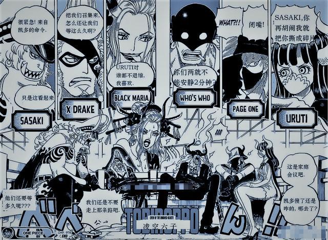 但随着故事的进展,才逐渐知道飞六胞组织相当的不简单。在上上话结尾,飞六胞全员出场,却只给了腿部特写,尾田也在给飞六胞埋悬念,钓足了观众们的胃口。在978话中,飞六胞全员倒是都露脸了。但好嘛,个个牛气哄哄,在讨论疫灾奎因这个大胖子之后,谁会坐上三灾的交椅上。飞六胞中的乌尔缇更是直言臭骂四皇凯多。不把三灾放在眼里,还臭骂老板凯多,飞六炮可谓是赚足了眼球。
