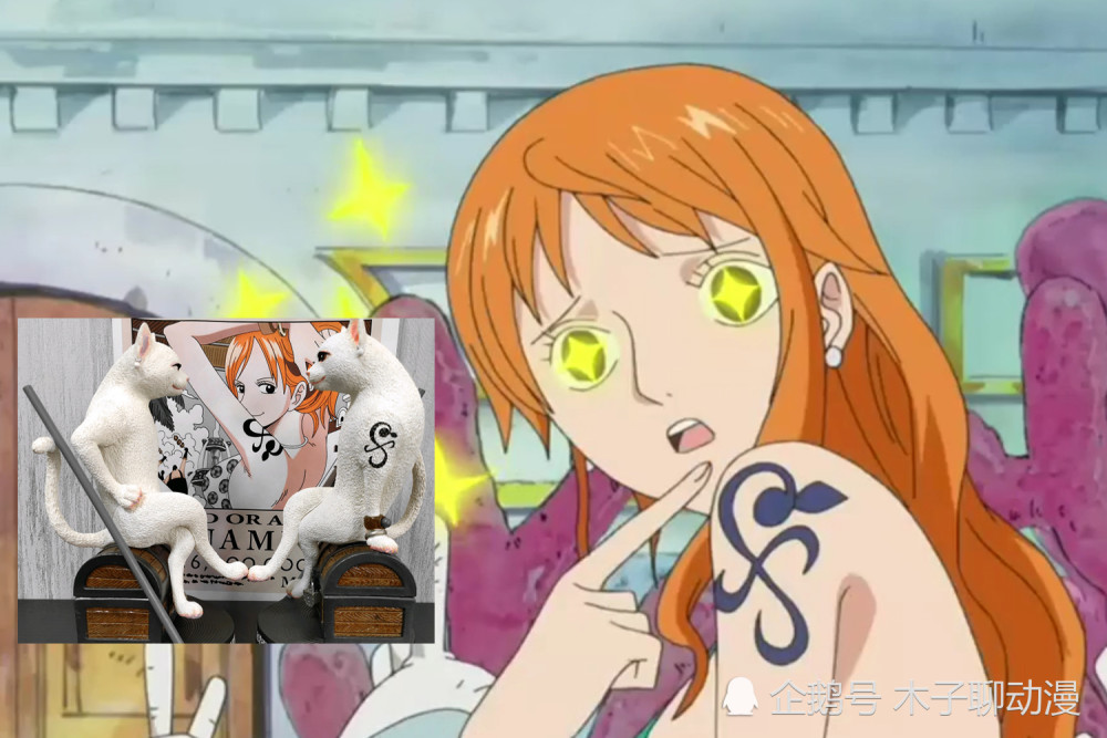 草帽一伙的航海士娜美,其称号为“小贼猫”,所以,尾田大大设定她的代表动物为“猫”也并不意外。另外,也有扉页将娜美和猫画在一起。