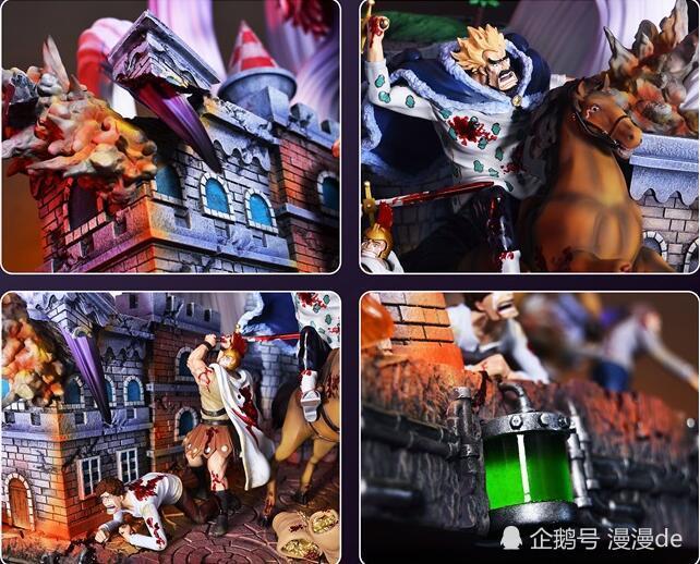路飞与明哥战斗的场地是德岛,当时有很多民众在场,还有力库王也在。虽然手办是体现明哥线线果实觉醒,也包含了德岛当时的情况。明哥的脚下有倒塌的房屋,还有力库王,以及在逃难的民众。手办对这些元素的刻画很精细,比对明哥的笑容刻画,要用心多了。