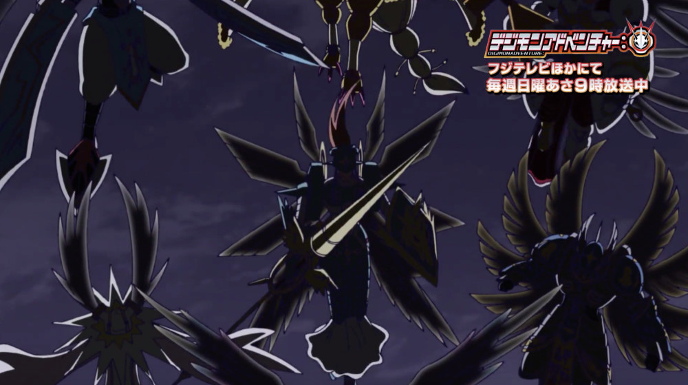 除了三大天使之外,预告片剪影中还有三位很有排面的天使型数码宝贝,那就是自带x抗体,守护数码世界天顶之门的键天使兽;众神之列首席战斗员斩天使兽;以及数码宝贝tri中缅因猫兽的正确究极体形态,近乎全知全能的拉结尔兽。在三大天使和这三位天使型数码宝贝面前,前文所提到的死亡兽似乎真的只能算杂鱼了。