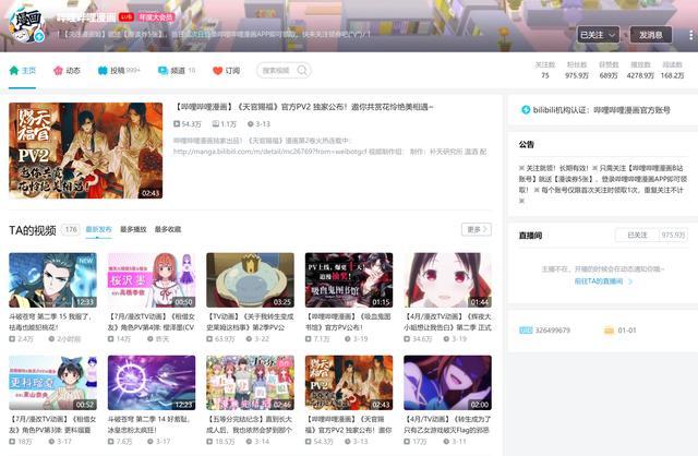 没错,它就是哔哩哔哩漫画在主站开的账号,作为B站旗下的网站,哔哩哔哩漫画这个账号其实就是发一些漫画相关的资讯,并且播放量并不高,破万的视频也就五个而已,和那些动辄几百万播放的UP主还是有差距的,那么这个账号凭什么可以超过老番茄成为新一届的B站一哥呢?