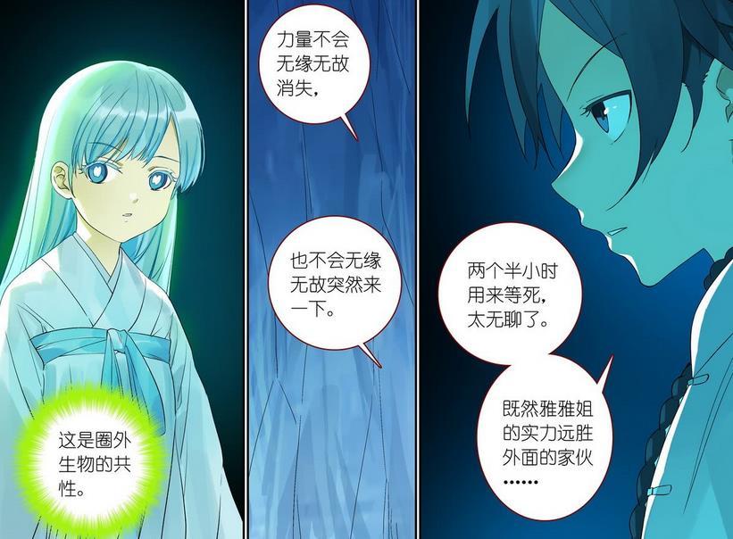在最新一话的漫画中为我们揭开了黑潭的真正实力,据被涂山雅雅所收服的那位圈外生物依称黑潭的实力并不如涂山雅雅,这也是为什么涂山雅雅敢来圈外收服黑潭的原因了,但是为什么实力超越了黑潭的涂山雅雅会突然失去力量呢?白月初一直感到很疑惑,然而就在白月初思考这件事情时,涂山雅雅突然进入了白月初的内心世界。