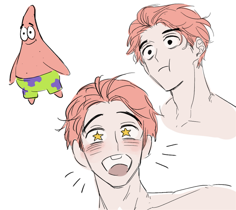 ▼派大星人如其名,它就是一只胖乎乎的粉红海星,是海绵宝宝最好的朋友。派大星的形象“很豪放”,穿着条沙滩裤,就这样过了20年。拟人化后派大星,看起来也是一个头脑简单的男孩子呀,粉色头发略微有点少女感,因为原版的派大星没穿上衣,所以拟人后也没穿,只不过画师太太没画出来而已~