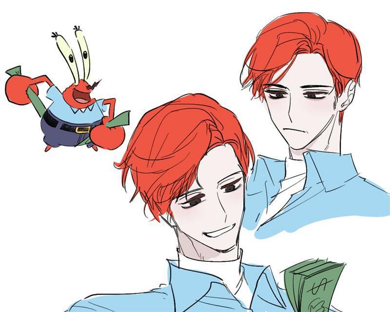 ▼如果《海绵宝宝》中的角色都有属于自己的颜色,那蟹老板的颜色肯定是红色,本来以为蟹老板这么爱钱,应该是美金的绿色。拟人化后的形象果然没让人失望,那一叠绿油油的美金真是抢眼呀!老板就是老板,海绵宝宝和派大星在他面前,简直就是弟弟呀!