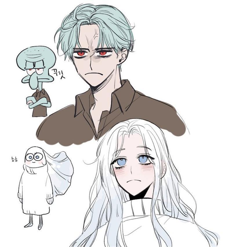 ▼其实很多人对章鱼哥的印象都不咋地,加上形象的不讨喜,差点就把他列入反派的那一类了。没想到拟人化后的章鱼哥,这样“丧”的表情,居然帅一脸!特别是同款的草青色头发和红色瞳孔,这个章鱼哥颠覆我们过往的刻板印象呀!(白色的这个女生,是画师太太的自画像,想必她也很喜欢这样的章鱼哥吧?)