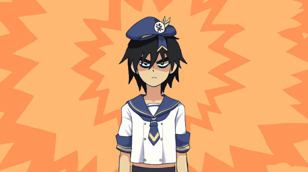 JK一词来源于日本网络流行语,意为女高中生。而JK制服也就是女高中生们的学生制服,也就是我们常说的“水手服”。大号染穿上JK制服后,表情严肃,感觉像是被人强迫穿的一样。或许是我们的主角柒不太喜欢这套JK制服,毕竟对于柒来讲过于普通了些。所以他就换上了下面的那套JK制服。