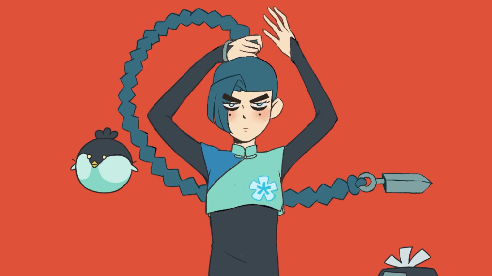 重头戏来了,柒COS反串梅花十三才是手到擒来。虽然柒的颜值没有梅花十三那么能打,但外形完全不输。首先头发方面可以说是COS的淋漓尽致,和梅花十三一样,辫子末尾处都绑着匕首。服装也是如出一辙,上面还有梅花十三独有的图案。最重要的还是在于柒的脸上,点缀了两个“假”泪痣,看来COSER柒还是相当专业的嘛。值得一提的是,旁边的小飞也变了色系,仿佛就是梅花十三的宠物。