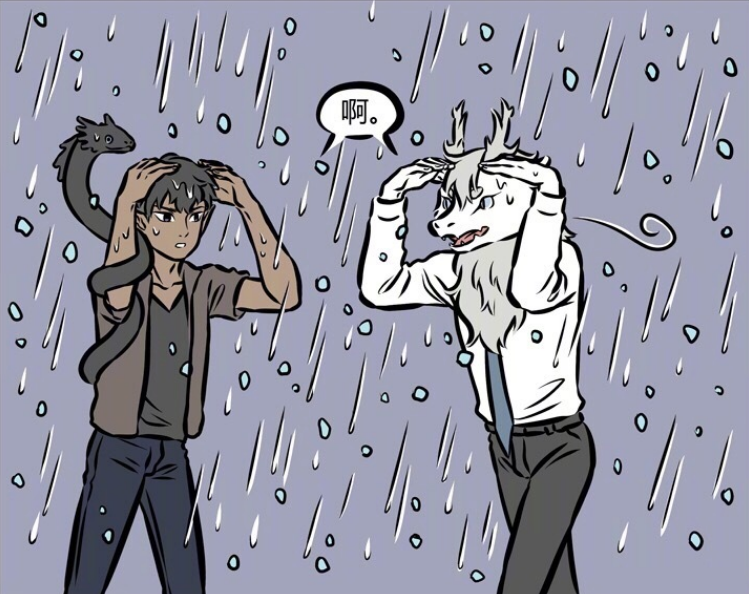 随后烈烈就碰到了玄武兄弟,玄武兄弟和他一样也没有带伞,两人都懂得对方的苦,毕竟外面正在下着冰雹,没带雨伞是很尴尬的。他两互相看了看彼此。