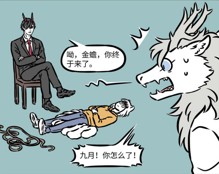 非人哉中九月这次是倒霉了,镜头一出场九月竟然被名叫金拽根的巨龙给绑架了,金拽根希望从九月身上套出金蟾的下路。这可倒霉了九月,竟然因为认识金蟾就被金拽根绑架,九月表示欲哭无泪了。