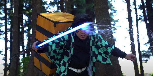 之前笔者就介绍过来自台湾的团队打造过高仿“水之呼吸”的效果的挥刀,通过3D打印的方式打造了炭治郎的刀,并且在刀柄上插入了一根导管,可以让水流淌在到身上;再在刀身后藏了一柄LED灯,这样就让挥刀的时候不需要任何电脑CG辅助的前提下,使出逼真的”水之呼吸“的效果……