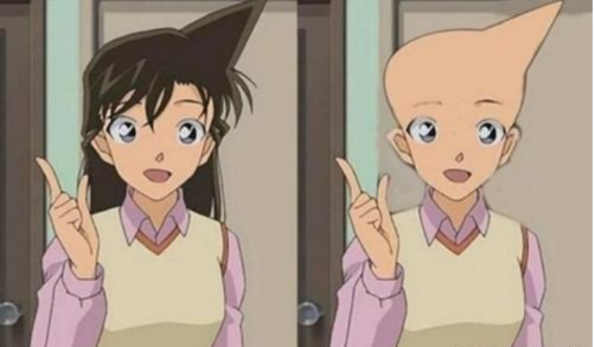 小兰的发型可算得上该作的标志画风了,其实该作就算在日本也算早期动画,人物的形象设计不免相似或者单调,或许是为了彰显人物的个性,小兰有了这样一头突兀的头发,尖锐得有棱有角的发型恐怕都可以戳伤人了,怎么少得了机智漫迷的恶搞呢?于是就有不少本要表示亲近的小兰因拥抱伤到主角的搞笑同人图,不过说到底,这或许是那个时代的呆毛设计吧。