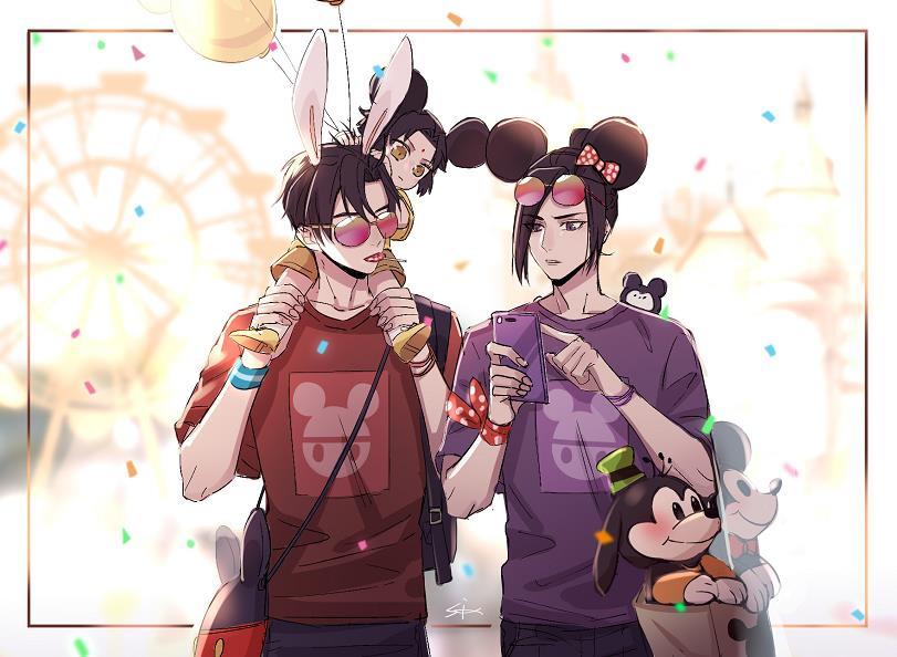 哪怕穿越到现代,舅舅们也是带娃能手,够耐心又够豪气,为得金凌一笑还不惜带他到乐园游玩,还穿上同款的兄弟装,一红一紫,他们所专有的颜色,羡羡更是带上粉色的兔耳朵、戴着粉色墨镜的他,特别帅气,口叼着棒棒糖,真的帅气得让人不敢认!旁边的江澄,和大小姐同款的兔耳朵,头上、手上那粉色的蝴蝶结,包里背着个大老鼠,为了哄外甥他也是拼了,真心好评!怪不得金凌都看得目不转睛,毫不哭闹。