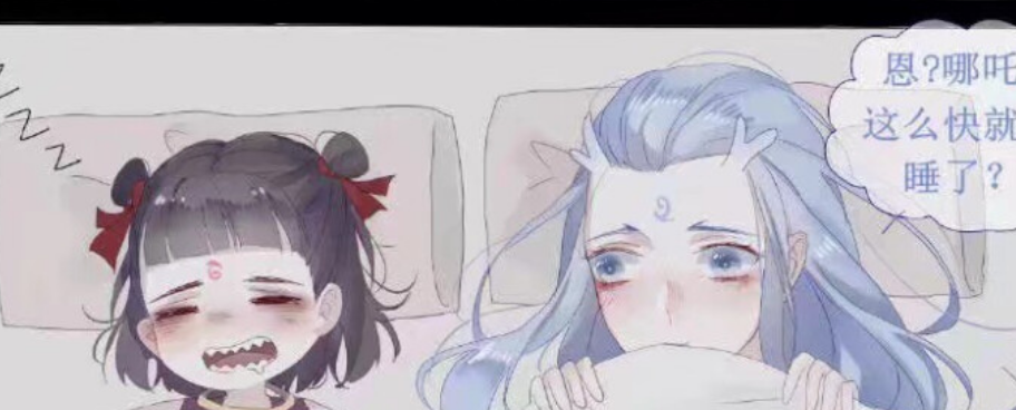 不过,敖丙一个人紧张心跳,但是哪吒却早早地就睡着了,果然还是个小孩子啊……