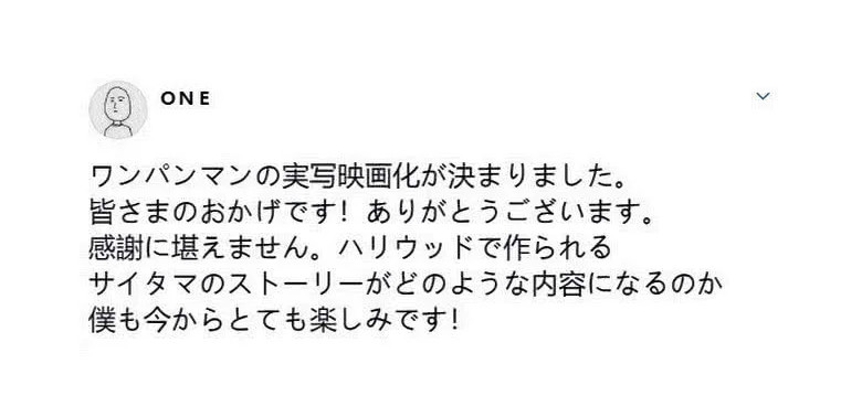 在其宣发时,索尼影业搞错了村田雄介与ONE的名字,把原作者与二次创作的作者给搞混淆了,这样严重的错误可以认为负责这个项目的人员或许根本没看过《一拳超人》这部作品,不然也不会犯这样的错误。而按照这样的逻辑来猜测,真人版的《一拳超人》多半会放飞自我的魔改。