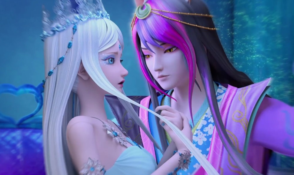 在叶罗丽第七季开始,冰公主和颜爵之间的关系变得非常奇妙,虽然两人在故事中没有表现出如恋人般亲密,但是站在“上帝”角度的观众粉丝早就觉察到这两个圣级仙子的关系不一般,两人的亲密举动越来越多。