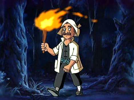 而在动画的第九集中,他们来到了北极。从克鲁德的回忆中,我们见到了他父亲的身影。由于他们的船发生了损坏,失去了指北针,他们在雪地中迷失了方向,始终在原地转圈圈。而克鲁德却说可能遇到了“鬼打墙”,因为他的爸爸就碰到过。