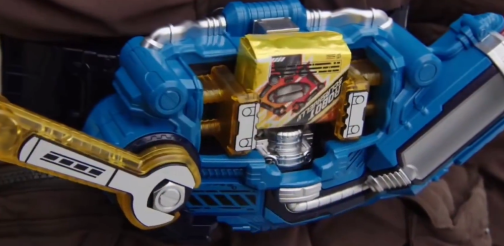 最后就是千位驱动器,千位驱动器的使用者是天津垓。在使用千位驱动器可以变身成假面骑士Thouser。千位驱动器在开始召唤的时候就会自己报名字,不仅如此他还会打广告。