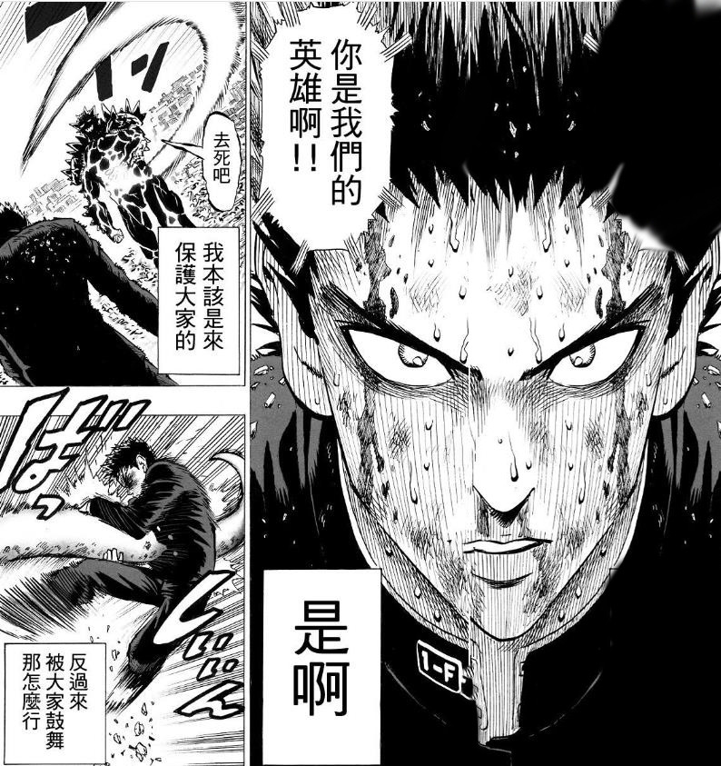 当然One老师的这部作品,只有一集,他塑造的这个主角其实和一拳中的爆破非常相似,无论是外形还是对英雄的理解,都有异曲同工之处。真正的英雄,能够打败怪人的同时,还能够保护人类,真正的英雄才能够影响别人跟随自己的脚步成为英雄。