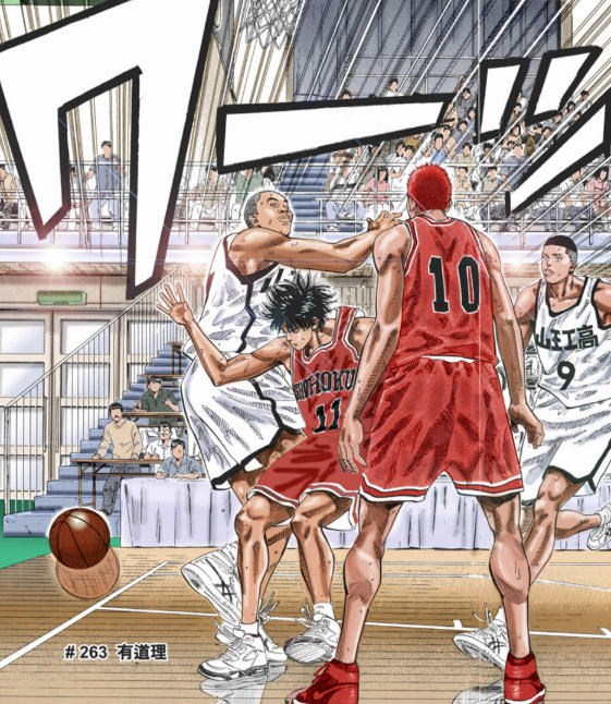 灌篮高手中湘北山王的比赛,随着流川枫找到破解困局的办法,终于能够和泽北相抗,在流川枫主导的一次进攻,助攻三井,打进一记三分球,在比赛还剩下3分16秒的时候,湘北将分差追到了只差10