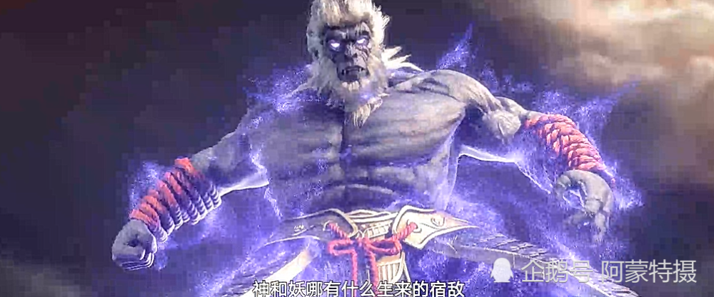 在这一次大电影中,孙悟空前后与三眼神将战斗了2次,第一次战斗孙悟空就直接开启巨大化,通俗点说,就是现出孙悟空的原形!全身呈现紫黑色,一方面验证了孙悟空作为大妖的身份,同时也展现了他的黑暗气息与战斗力之强。