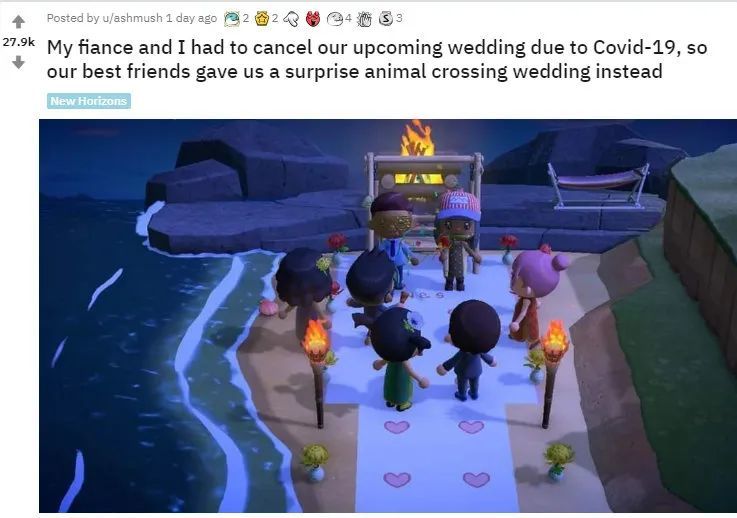受疫情影响、国外一对新人不得不取消了原本计划好的婚礼、这令他们非常沮丧、然而好友们却给了他们一个惊喜、在动物森友会里为他俩办了一场特别的婚