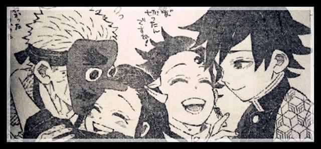 不过,月有阴晴圆缺,人有悲欢离合,在漫画中,酱铺君也看到了麟泷师傅还是看到了自己的弟子富冈义勇,炭治郎,祢豆子他们相聚,去世的锖兔与真菰也应该会很开心吧。总之,香奈乎和炭治郎的感情仍是谜团,就看作者鳄鱼最后一话给出的彩蛋了。