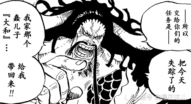 因为盟友BIG MOM也在,所以凯多自然想让自己的儿子露露脸。然而,大和不止是不参加宴会,竟然还失踪了。大和应该是跑出去玩了,这种行为或许就是所谓的叛逆,或者是有的特立独行的性格。