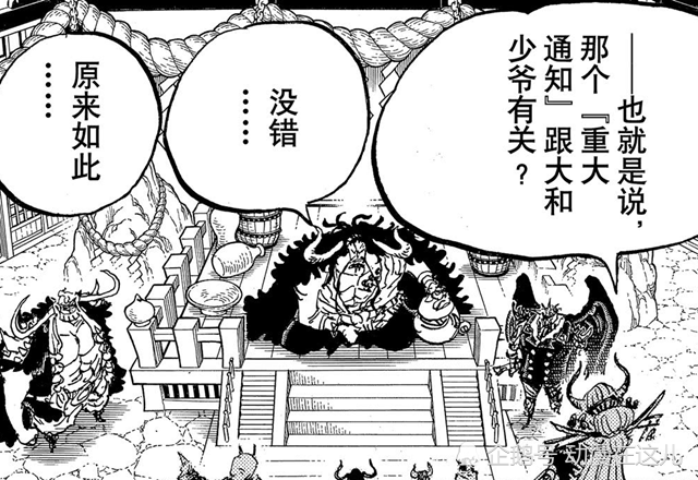 凯多想让儿子露脸,其实还和一件大事有关,这件大事提前泄露会引起骚乱。鉴于凯多和BIG MOM联盟,而BIG MOM又只相信血亲,喜欢联姻巩固势力。所以,凯多的儿子大和可能会和BIG MOM的某个女儿结婚。