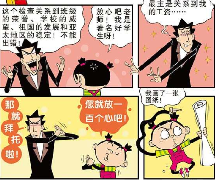 在熙熙攘攘的人群中,在匆匆忙忙的脚步中,我听到了一种声音,天使的声音,好人总有好梦,付出总有回报。我是雨过了天晴了,这次给大家带来的动漫是《爆笑阿衰》,漫画中阿衰和大脸妹之间总是能发生有趣的事,而金老师又在其中充当着很重要的角色。下面我们来一起看看今天发生了什么!爆笑阿衰:阿衰与大脸妹传出绯闻!学校来了专门检查个人卫生的“检查