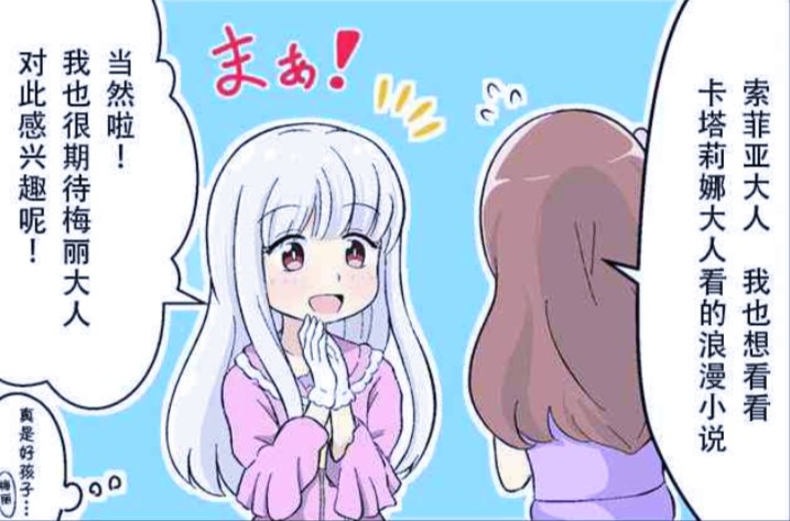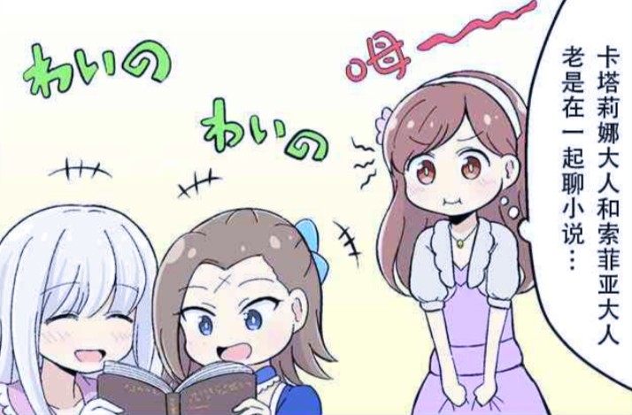 卡塔莉娜夜很意外,原本只有索菲亚一个同好者,没想到现在玛丽也开始看恋爱小说,当然卡塔莉娜根本不知道玛丽是为了更接近她才这样做的。