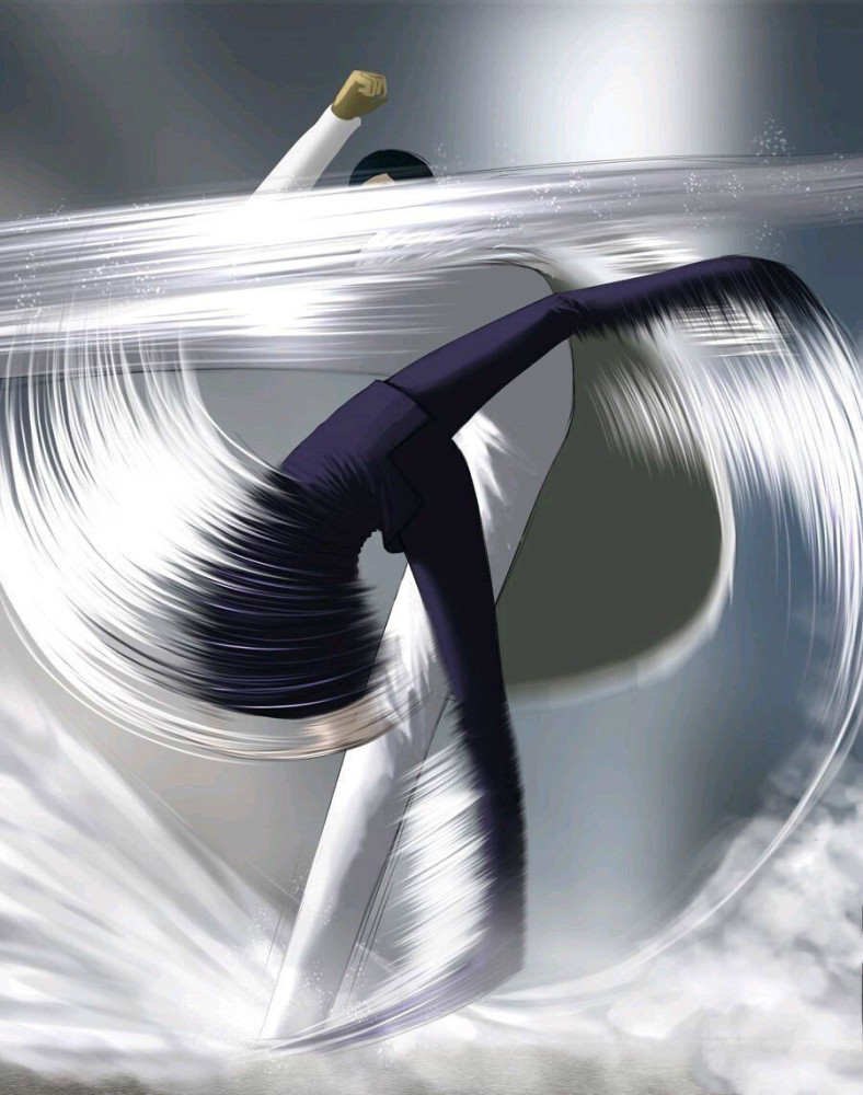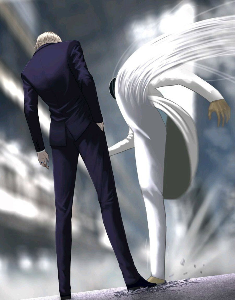 下一秒山治开始动了,先是腰向下猛扎,躲开维尔戈正面踢过来的一脚,同时借助腰部力量,右脚甩起,朝着维尔戈头部踢过去。维尔戈的腿像一条沉重的钢鞭,山治也一点不差,如果说有差别的话,只能说山治的腿更重更有力。