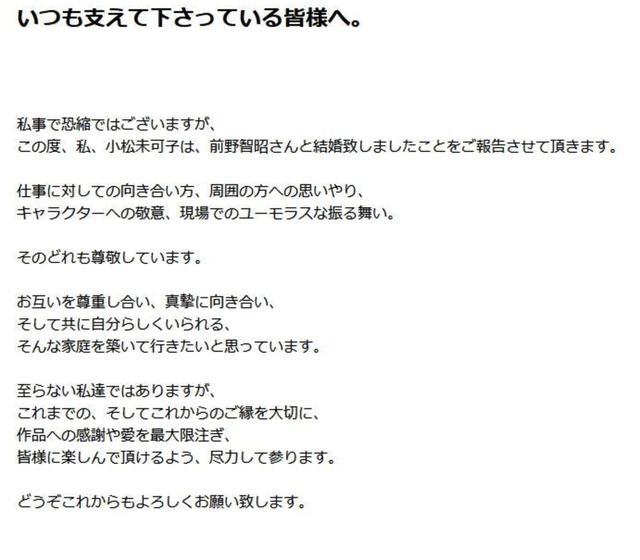 5月12日传来最新消息,声优小松未可子和同是声优的前野智昭宣布结