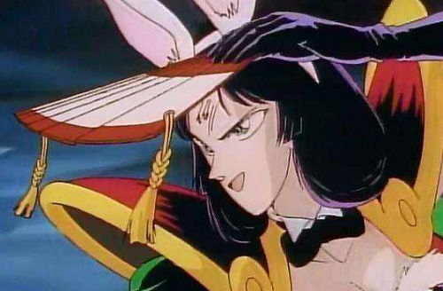 龙神的继承人出现以后,辉夜姬在月球的封印消失,辉夜姬入侵地球(月兔族人我看的翻译是这个),鬼丸猛铁剑合力与辉夜姬开战,鬼丸猛被暂时封印,辉夜姬由于力量不纯粹无法长期战斗(吸食少女精气才能暂时恢复青春),动用族中最强的罪人黑兔子(忘了叫什么),让他去抢夺女主(龙巫女),这黑兔子拔出来月兔族最强武器魔王剑,魔王剑的威力和使用者的邪恶之心成正比,黑兔子可以使用魔王新月剑(月牙),魔王半月剑(一半的月亮)威力比核弹还大上很多倍。