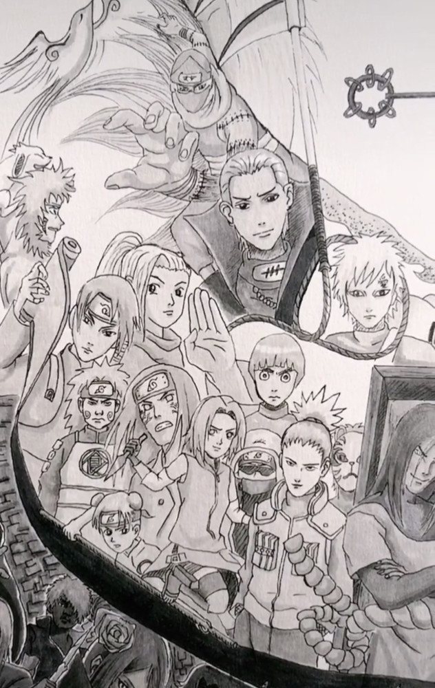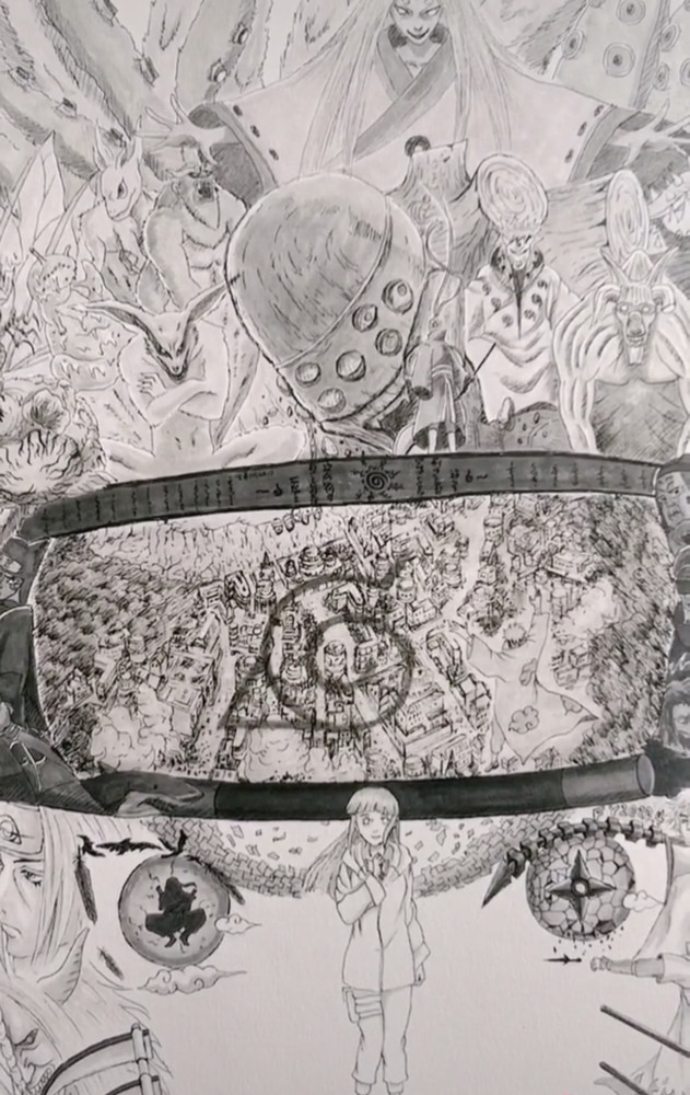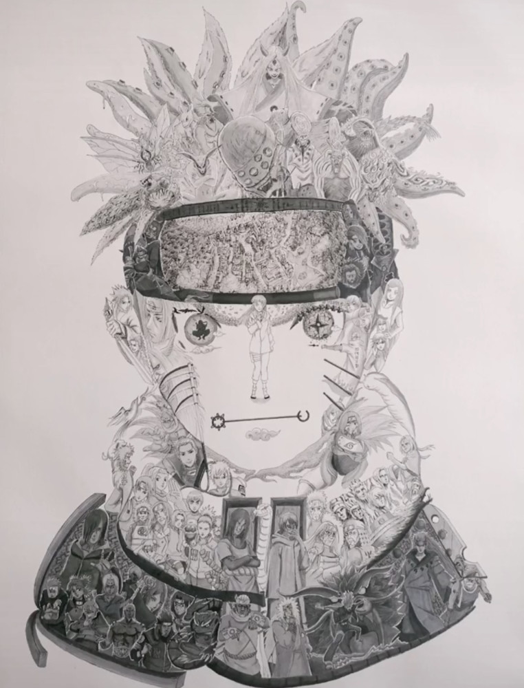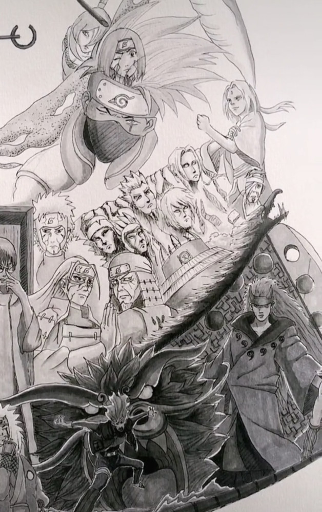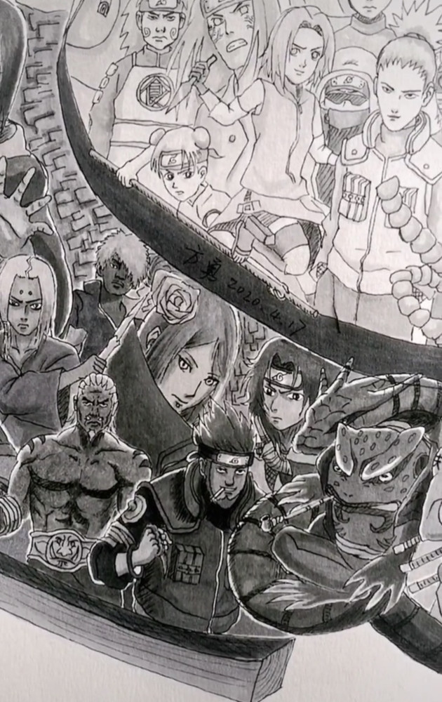 一张鸣人图就能集齐这么多火影忍者中的角色,如此有创意的手绘作品,你觉得这张图片能值多少钱呢?