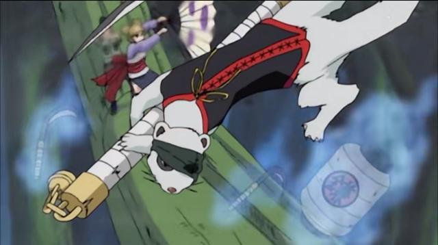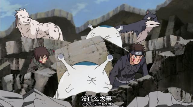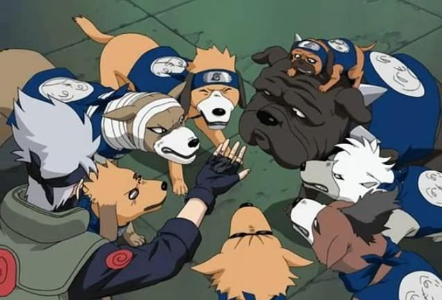 然后是卡卡西的八忍犬,仔细观察的会发现其中一只忍犬头上和身上都有绷带。而且不管哪一次出场这只忍犬身上的绷带都没有被去除。如果不是为了装饰的话,这只忍犬必定会受过伤。而且貌似还是不小的伤,当然这并不影响它实力的发挥。