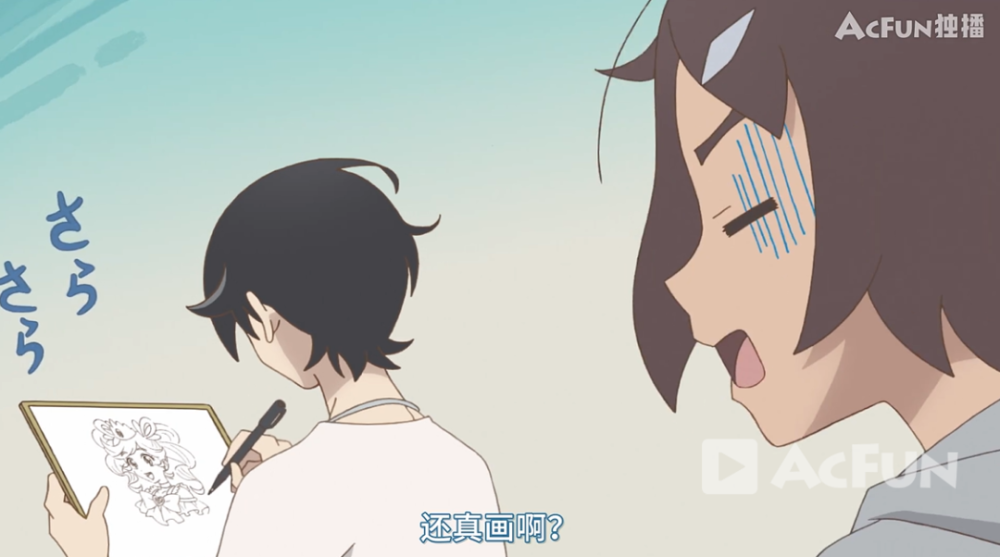 比如说有这么一段剧情,男主角为了向女儿的班主任展现漫画家在现实社会中被很多一般人误解的难处,于是乎就直接拉上班主任来到了一家咖啡馆,咖啡馆的员工知道男主角是漫画家,就直接请求男主角帮忙画一张《闪之美少女》的插画,男主角明明是低俗漫画作者。