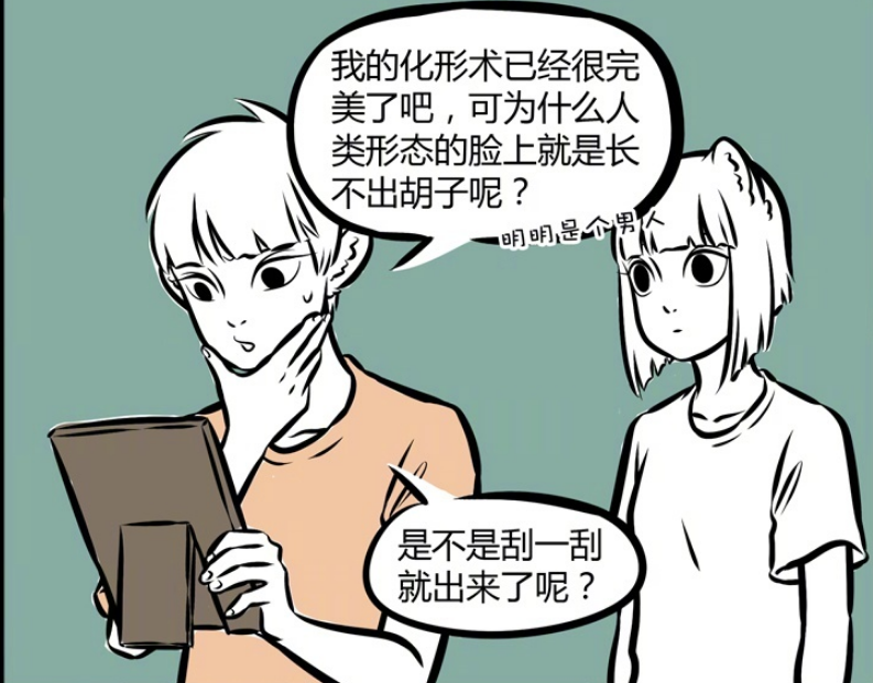 非人哉神仙十一月最近遇到了一件郁闷的事情,那就是自己人类形态脸上却没有胡子。十一月很是郁闷,他感觉应该刮一刮胡子就应该会长点胡子吧,九月在旁边看着自己的傻哥哥不知道说什么好。