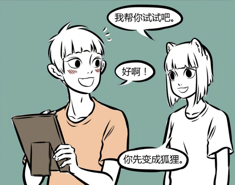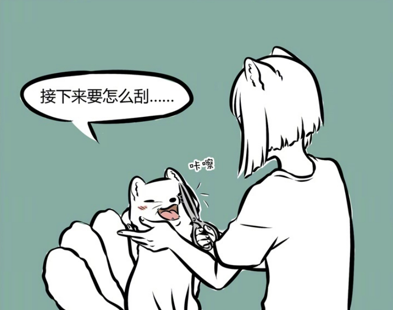 接下来十一月就变成了狐狸憨憨的问:“接下来要怎么刮胡子呢?”十一月还没有说完,九月就拿出剪刀咔嚓一声将他嘴角的两根毛给剪断了!既然人形态没有办法刮胡子,狐狸形态还是有的,所以九月选择坑哥。毕竟这样做十一月也不好意思说什么,反正也是十一月要刮胡子。