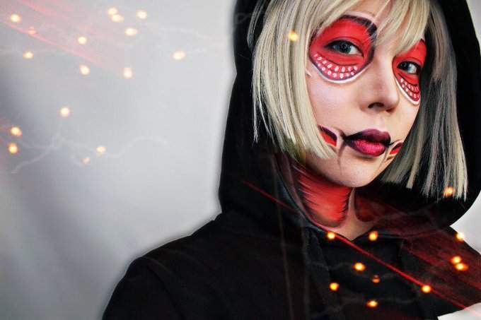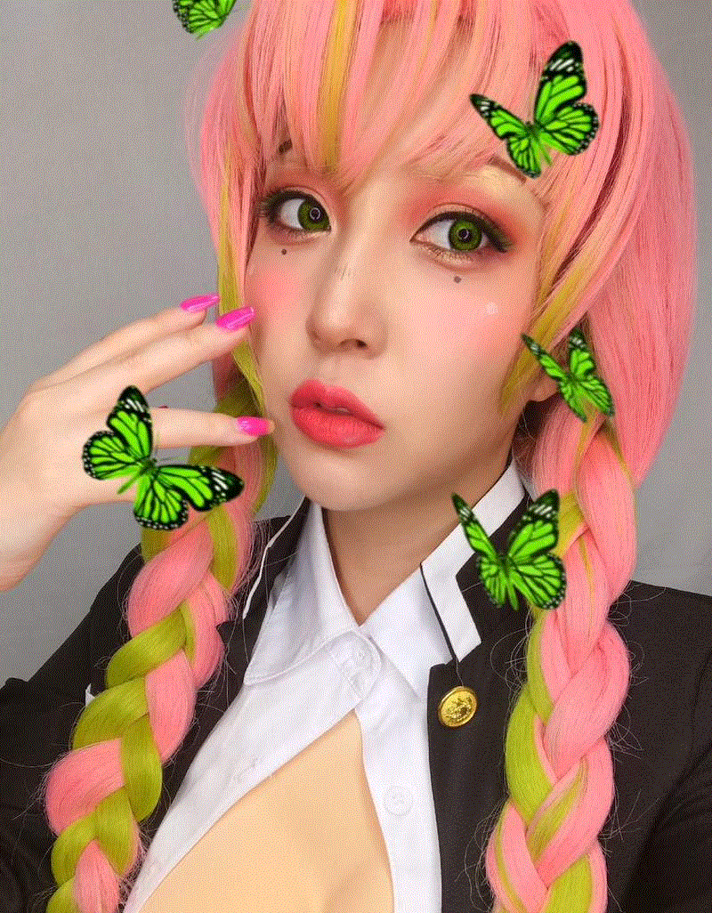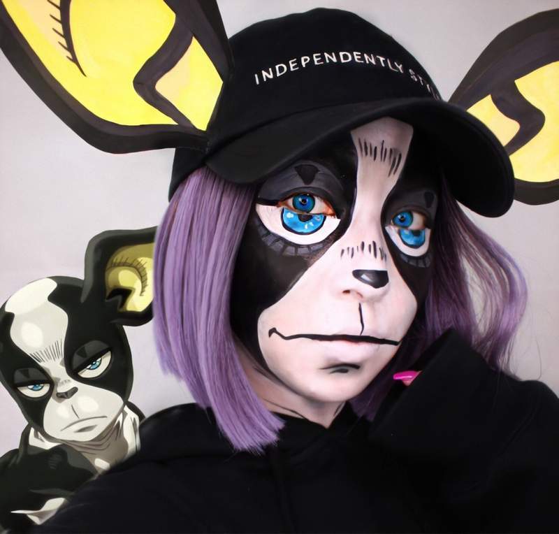 她其实有不少动漫宅神妆作品,无论是JOJO的奇妙冒险,还是进击的巨人或鬼灭之刃,这些人气作品她都有挑战
