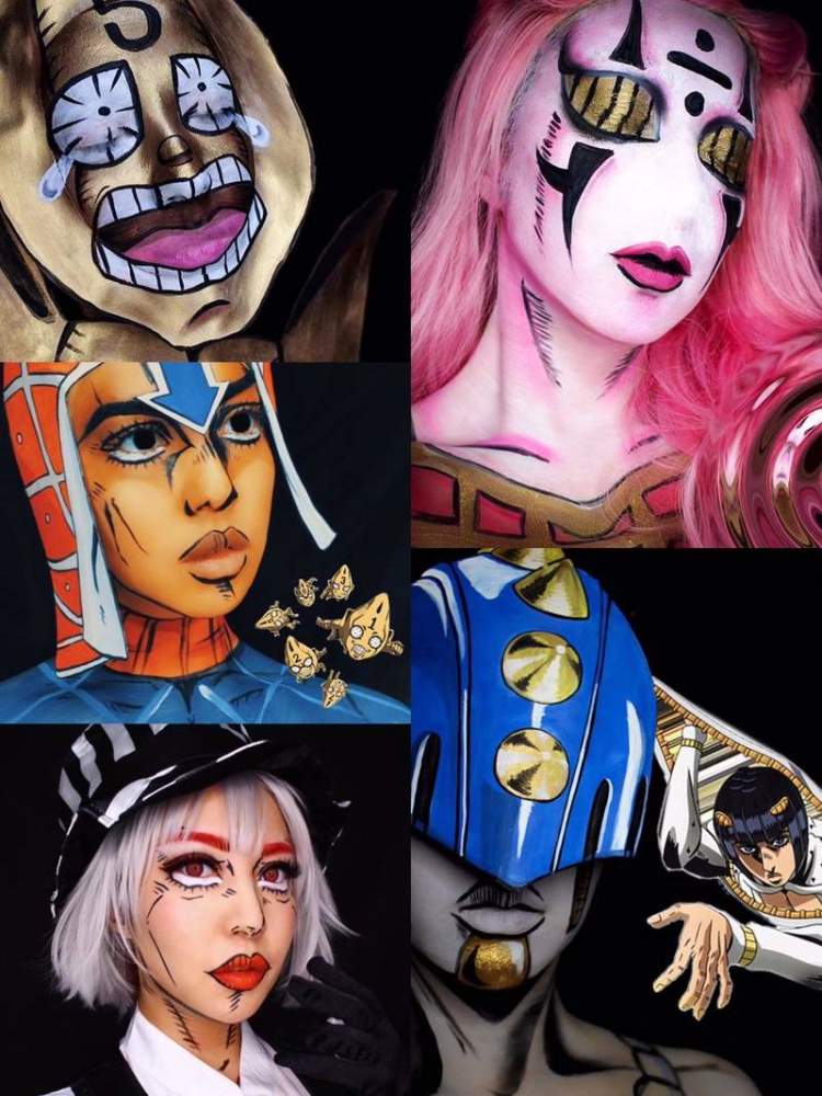 推主“o-ji @ouji_shironuri”过去挑战过的历代JOJO妆容