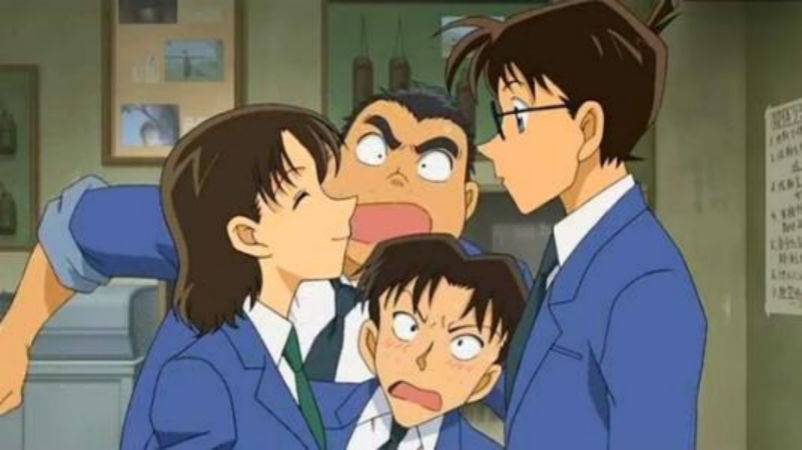正如上图一样,在身后出现有力的拳头后,步美终于可以放下芥蒂尽情宣泄,只是在她的这个时期,这个身后的角色大多由父亲扮演,但父亲却不是唯一,当精明聪慧,甚至可以以一己之力硬怼恶人的柯南出现后,她就为此折服了。