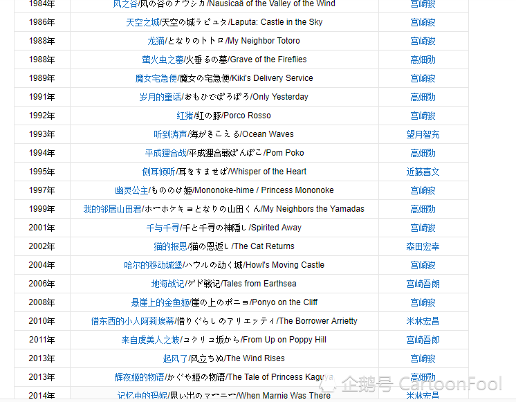 吉卜力工作室制作的长篇动画作品都十分经典,