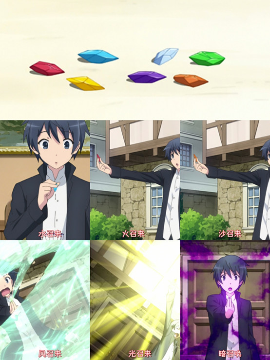 在主人公进入的新的异世界,魔法仍然是这个世界的主旋律,设定中人物是可以使用魔法的,并且分别有火(红),水(蓝),沙(橙),风(绿),光(黄),暗(紫)以及无属性魔法(白),而使用三种属性魔法的人已经极其少见,但是主人公可以使用全部属性的魔法!!!