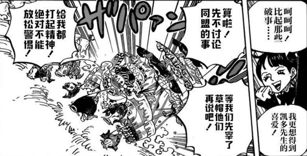 要说的话,和之国这一仗其实就是拼的战力和人数,真打、十位霸蛮者、凌空六子、三灾、两皇,路飞方则有路飞、基德、罗三位超新星海贼团、赤鞘九侠,仅仅是凯多和大妈都已经是非常难以处理了。