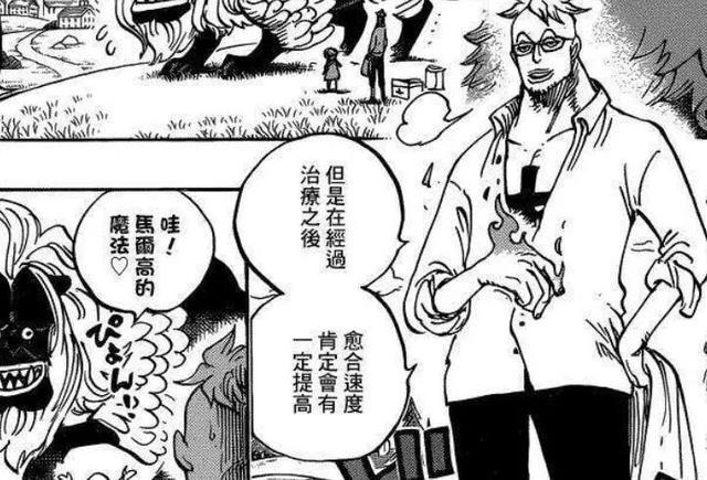 不过从剧情设定上来讲,我们多少还是能得出一些结论的。小马哥的资料卡上,尾田明确标注了,马尔科短时间内和大将战平,这是相当高的肯定。除此之外,黑胡子纵横大海,五老星指出只有红发或者马尔科才有可能阻止他。此时已经开始把小马哥和红发并提,笔者觉得从某种程度上来讲,剧中人物已经默认了小马哥的“四皇级”实力。