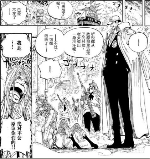 大胃王-乔艾莉·波妮在被黑胡子抓住,要求与海军换一艘军舰后,赤犬亲自出马说了一句:听说你从政府那边逃走了的时候,老夫惊出了一身冷汗,不过一切都结束了。