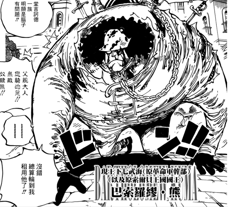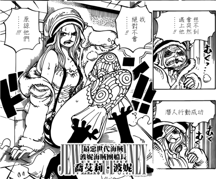 其实也在暗示着波妮的身份非常不一般,而且和世界政府有关。之后在世界会议,才发现波妮变老之后是索贝尔王国的王太后-可妮,是世界政府的加盟国之一,而巴索罗缪·熊则是原索贝尔王国的国王!!波妮目前主要的目的是拯救熊,因此她也掉出了成为海贼王的候选人了。